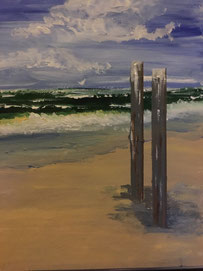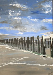 Palen Badstrand Vlissingen, op canvas incl. lijst afm: 30 x 21 cm